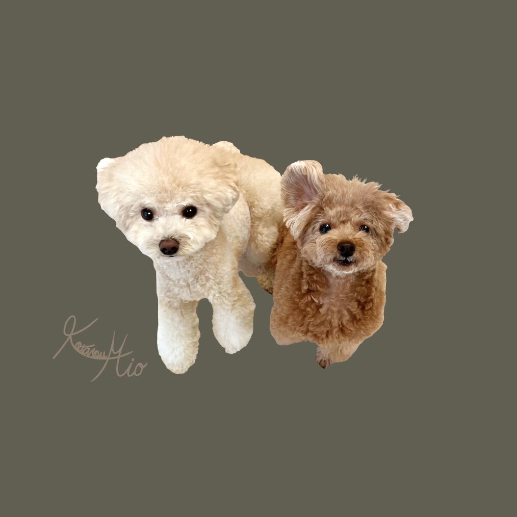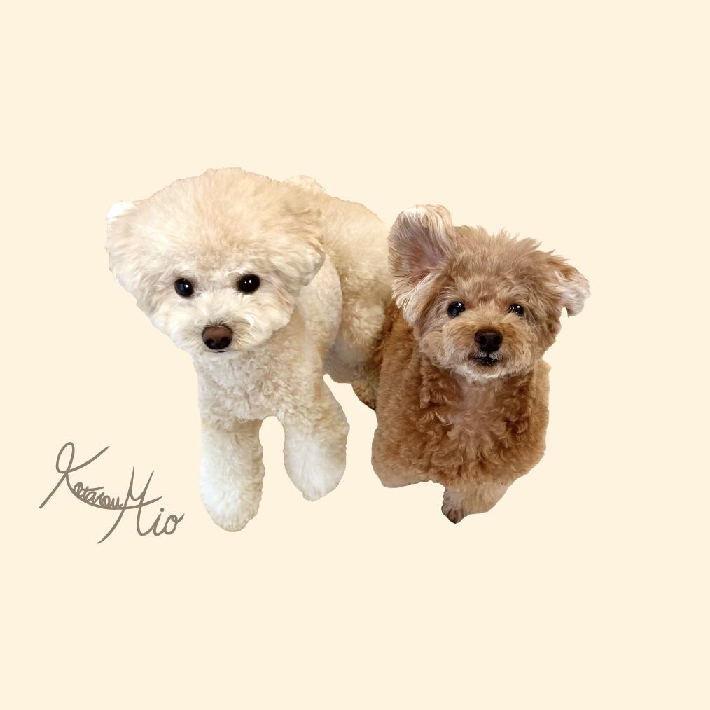 背中には上目遣いの虎太郎と三桜がプリントされています。"