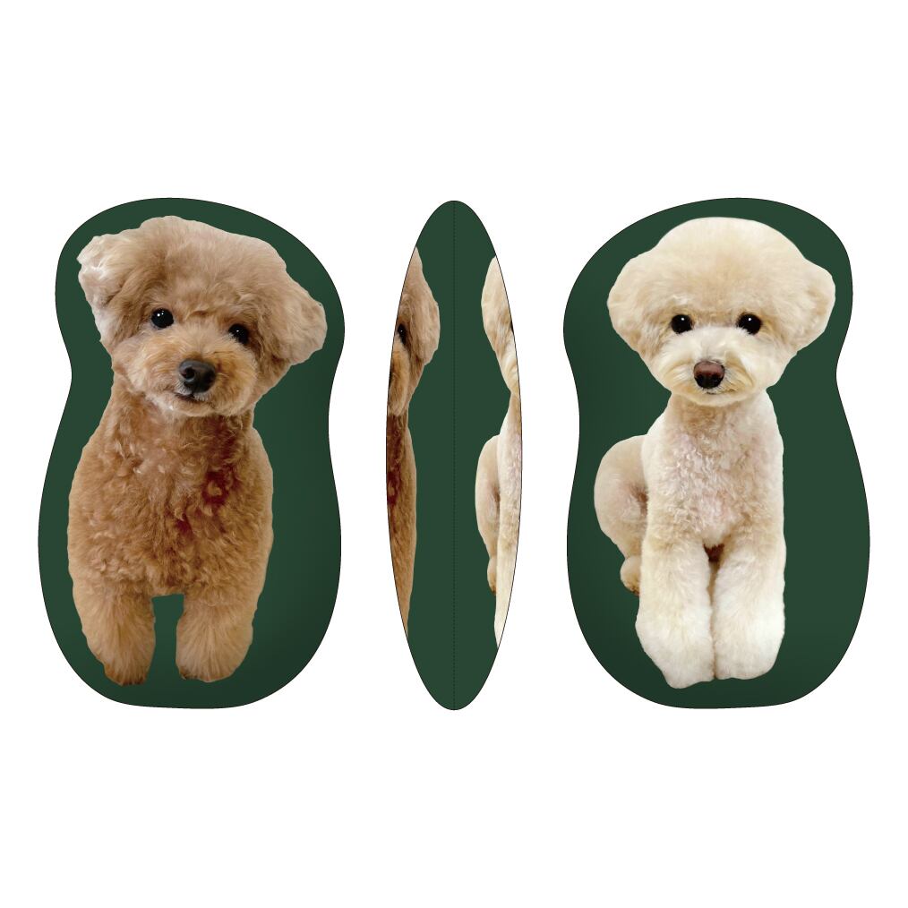 お座りしている虎太郎と三桜が表裏に実写でプリントされているクッションです